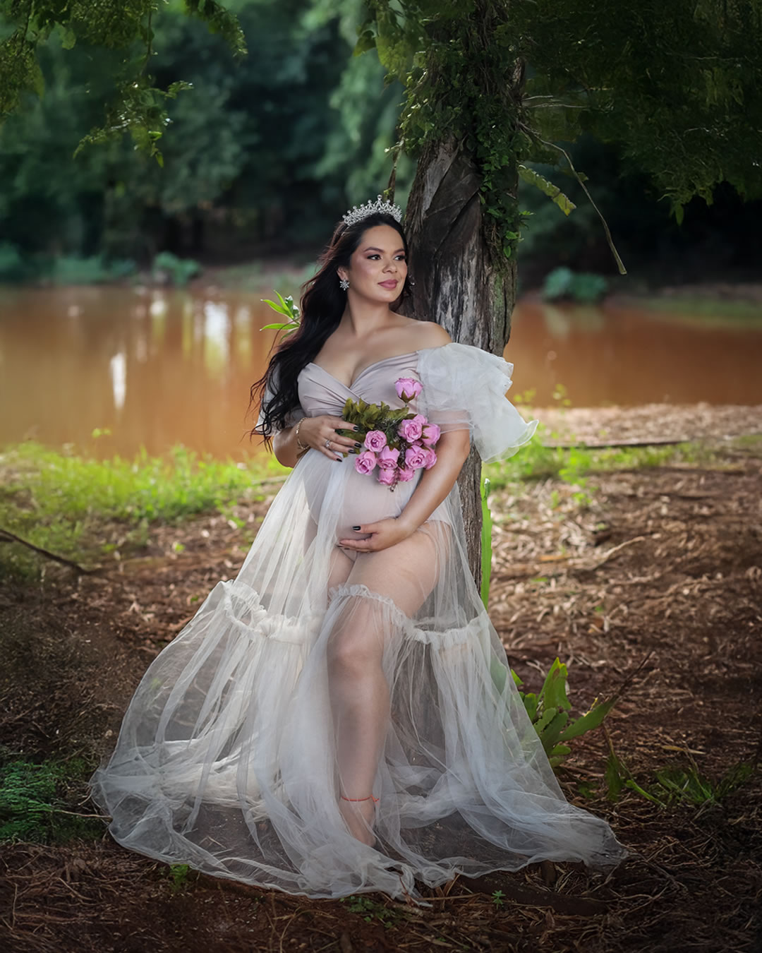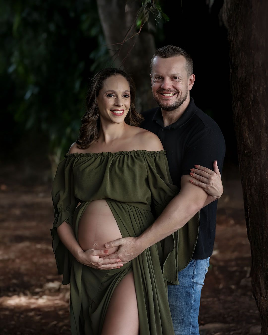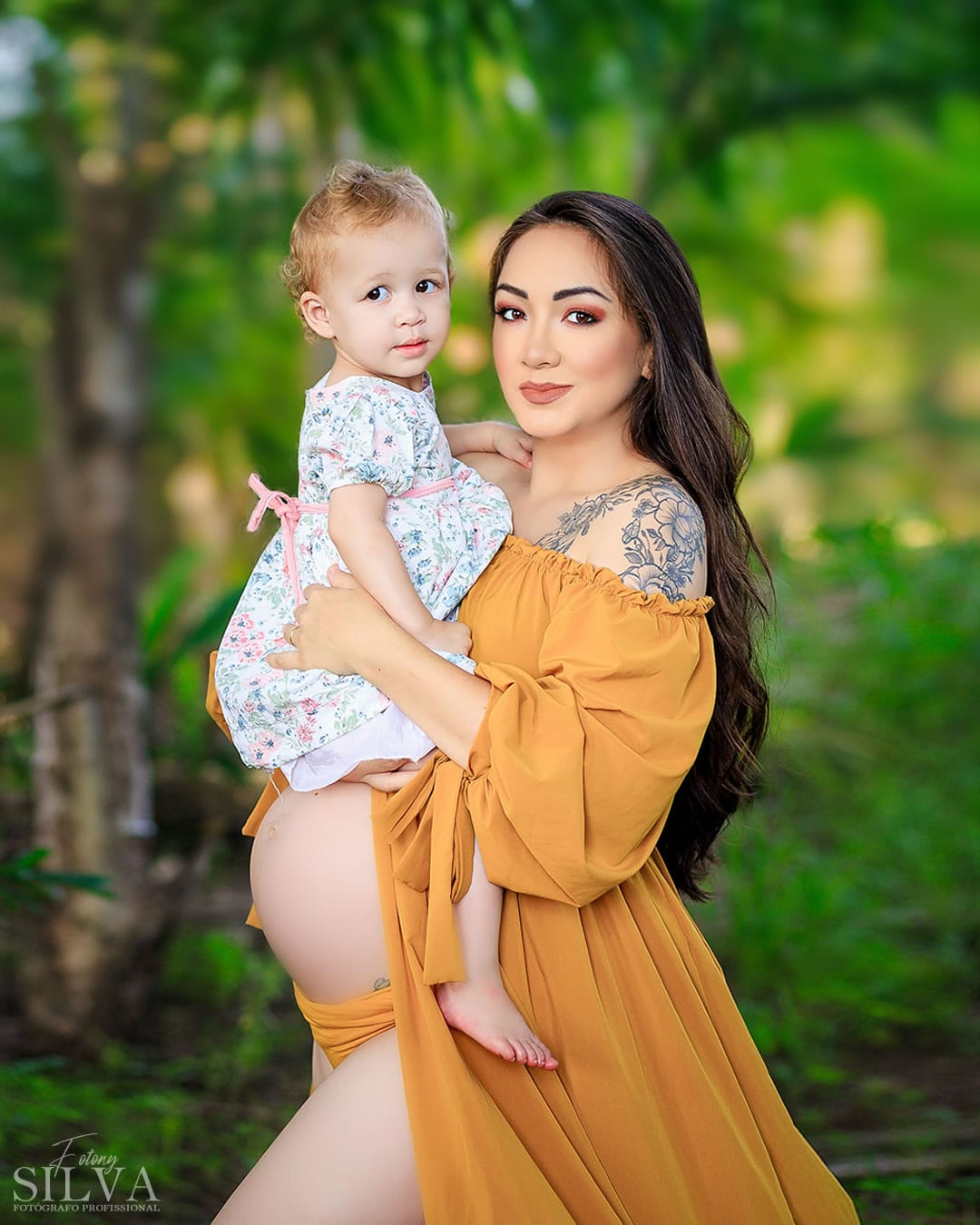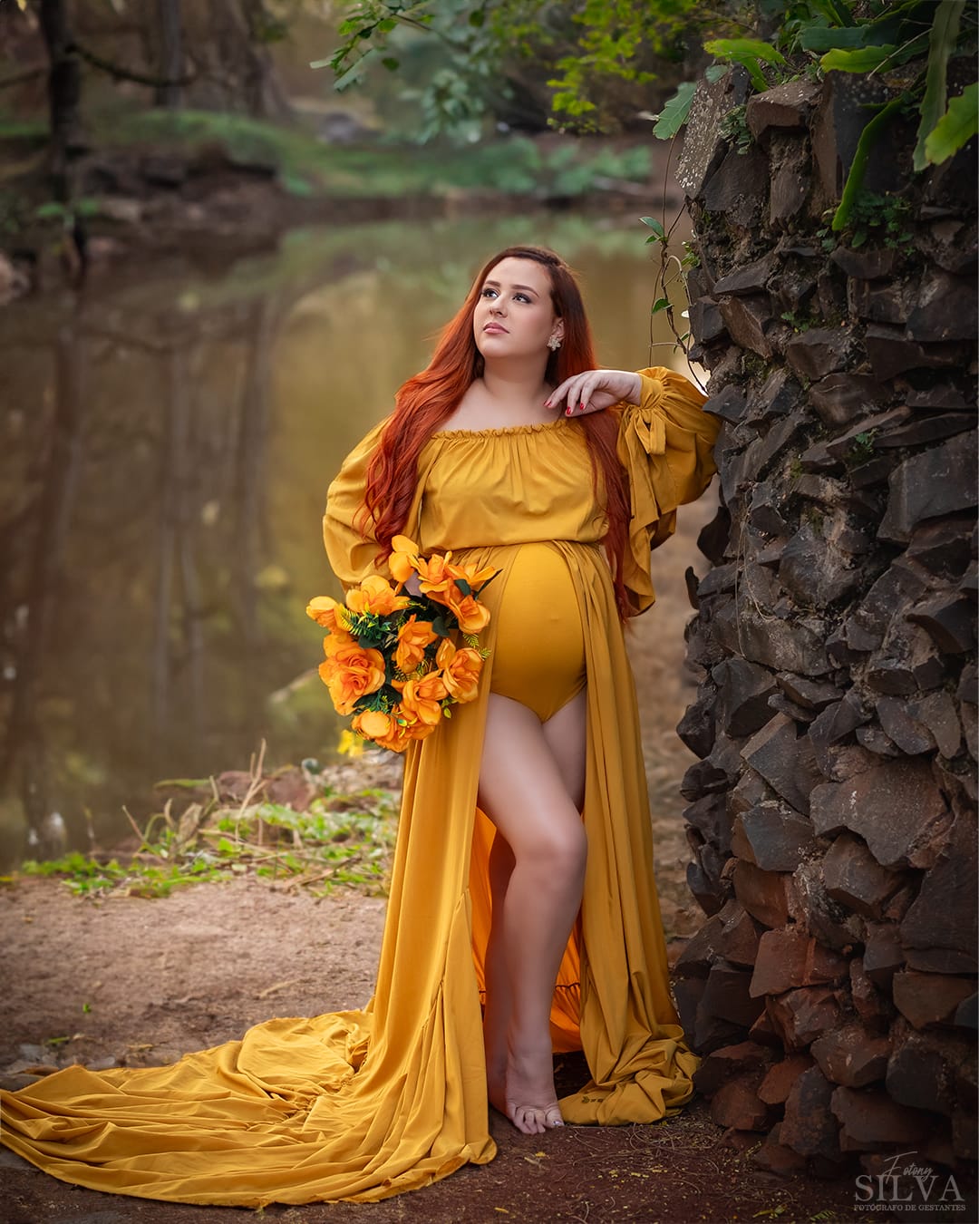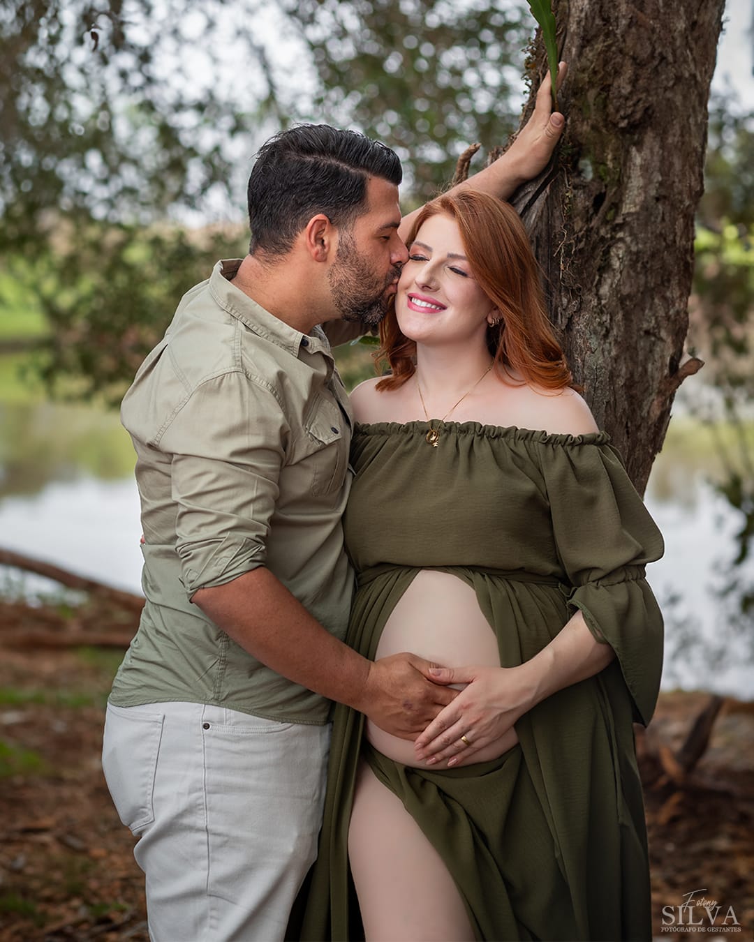 Temos estúdio para ensaio fotográfico de gestante interno e também uma linda chácara com lago, gruta e muito verde para ensaio fotográfico gestante externo na natureza.