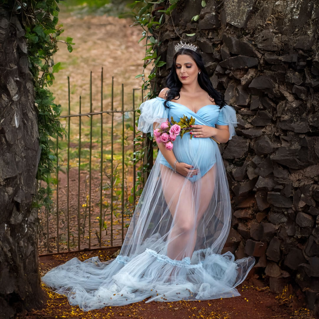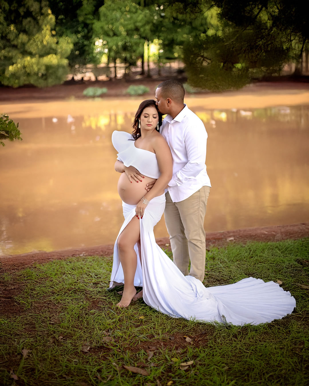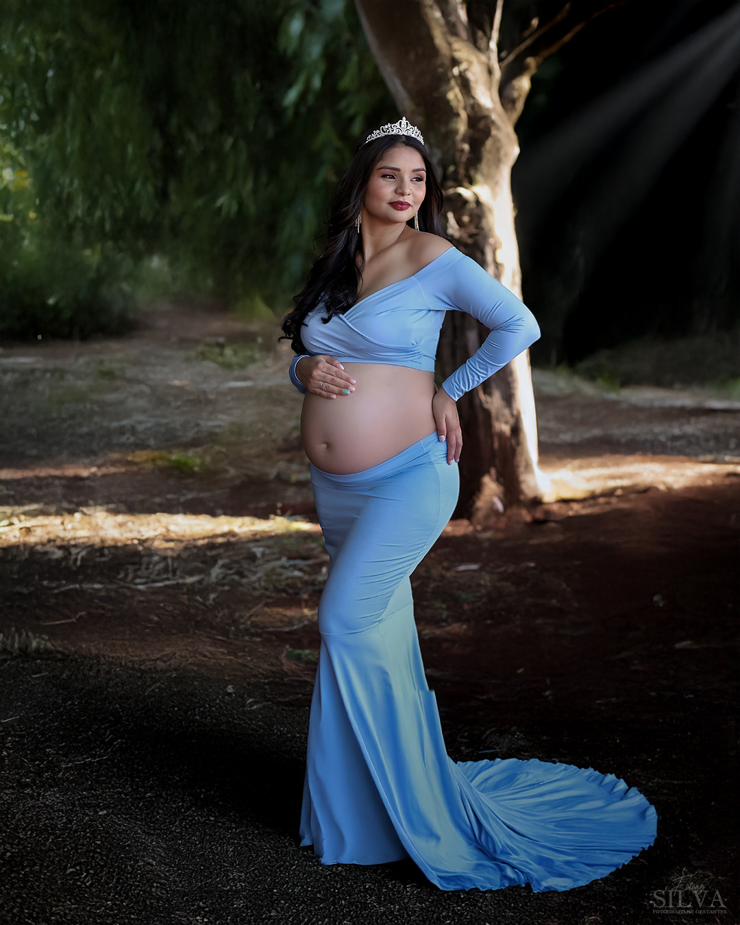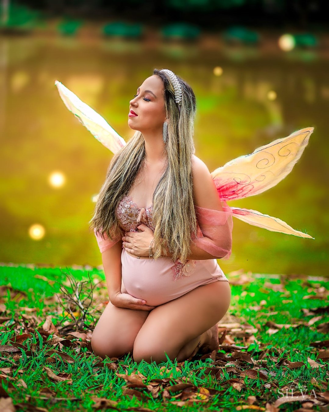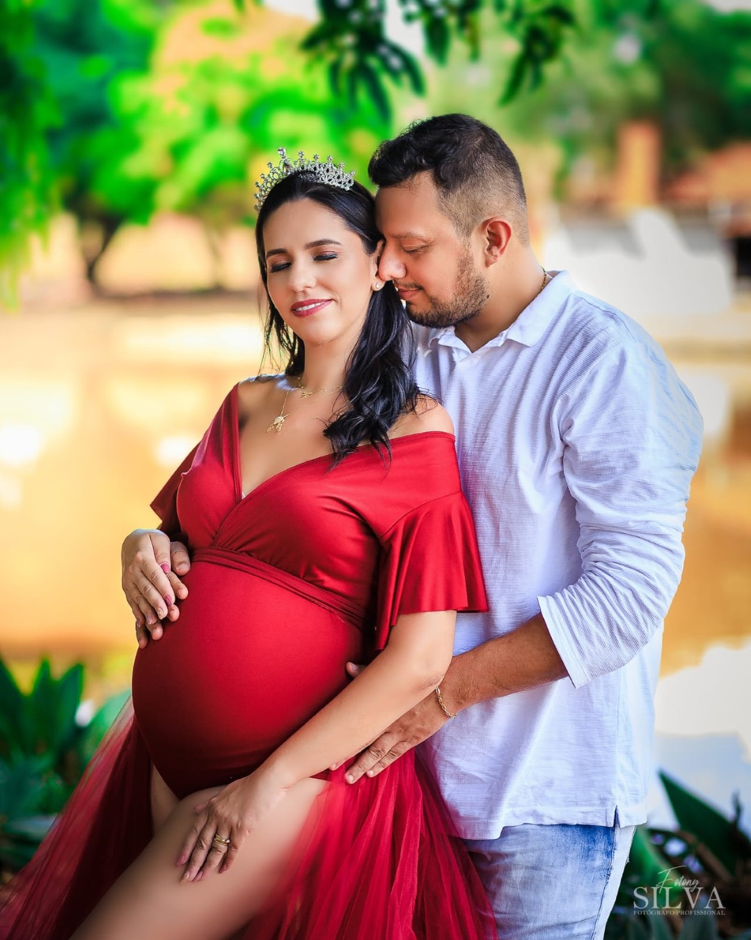 Temos estúdio para ensaio fotográfico de gestante interno e também uma linda chácara com lago, gruta e muito verde para ensaio fotográfico gestante externo na natureza.