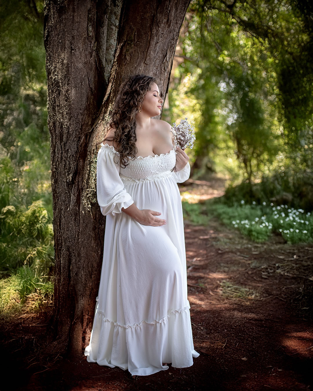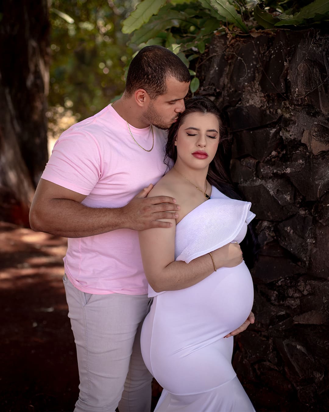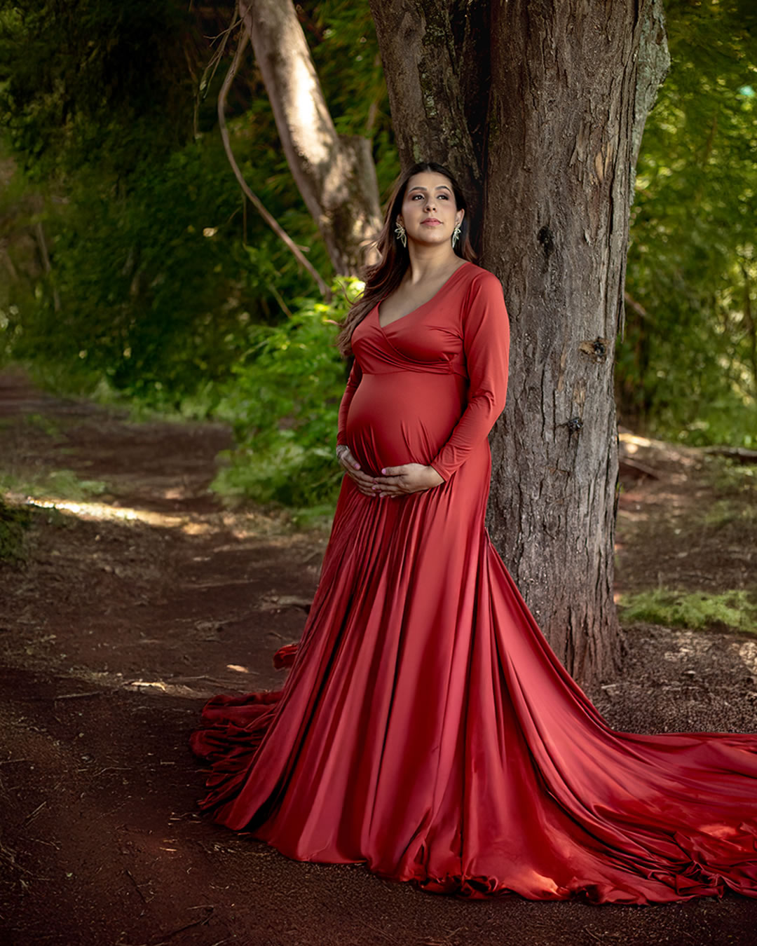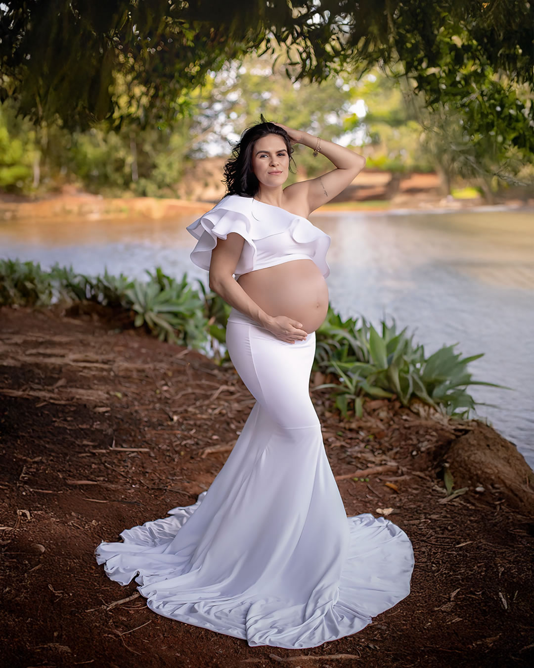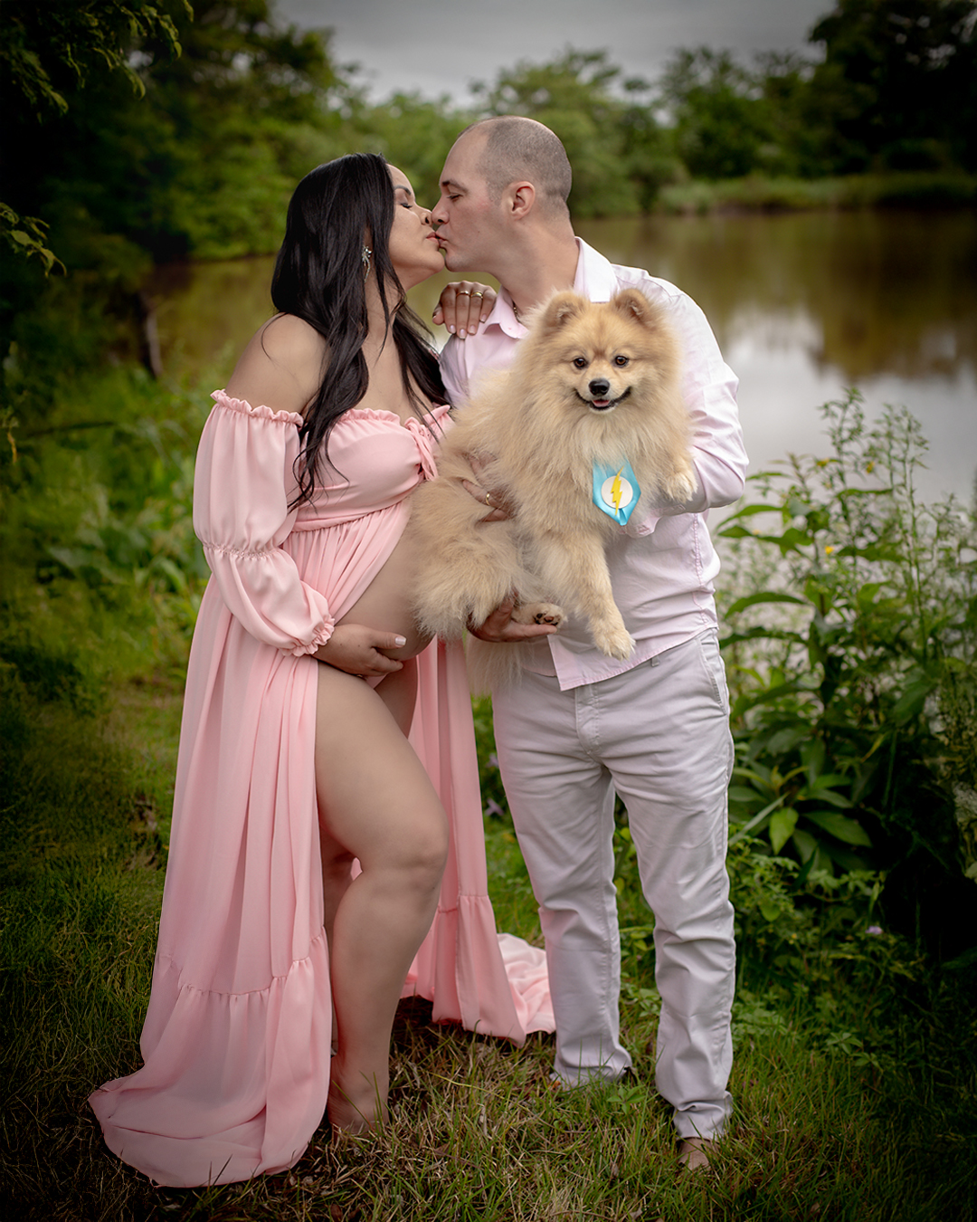 Temos estúdio para ensaio fotográfico de gestante interno e também uma linda chácara com lago, gruta e muito verde para ensaio fotográfico gestante externo na natureza.